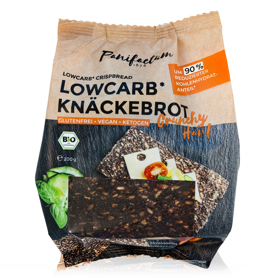 Popolni hrustljavi kruhki brez glutena na osnovi sončničnih semen, mletega lanenega semena in semen neoluščene konoplje. Vsebnost ogljikovih hidratov je zmanjšana za 90% v primerjavi z običajnimi hrustljavimi kruhki.