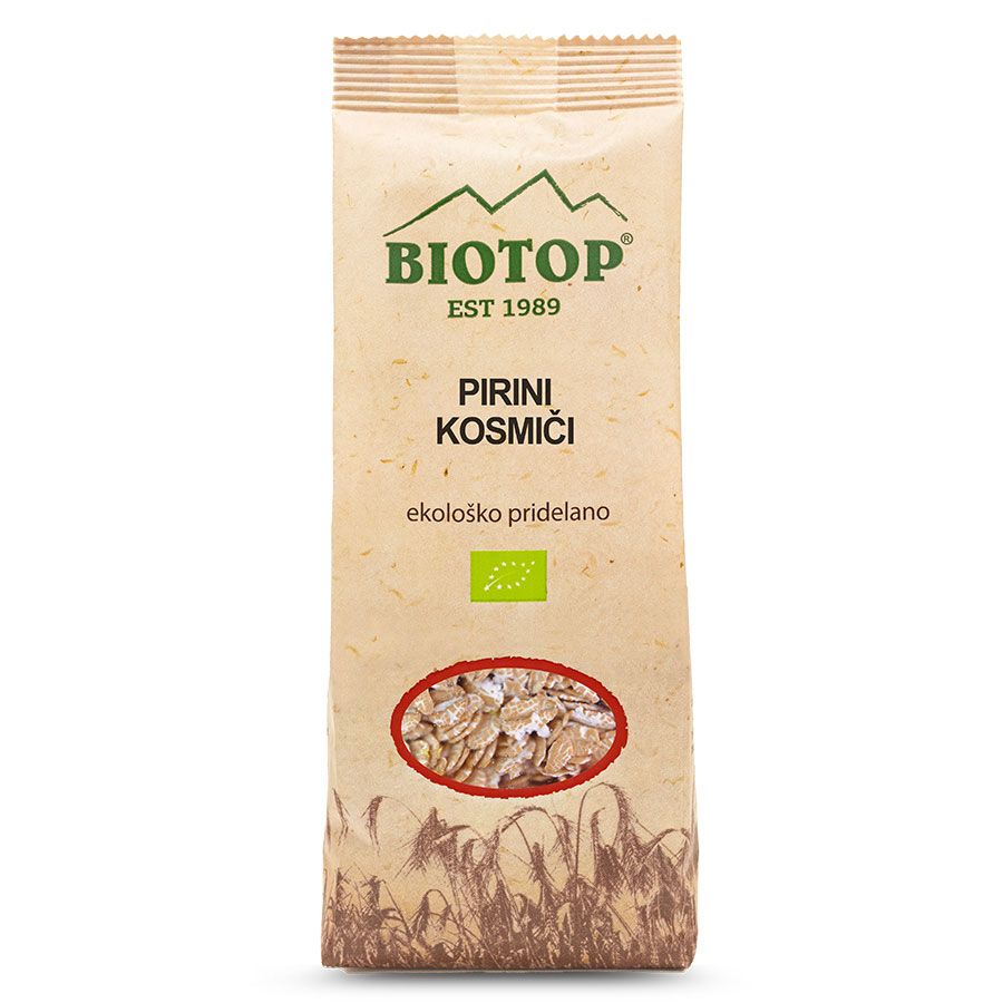 Pirini kosmiči se pripravljajo iz ekološke pire, stare vrste pšenice in ohranjajo vse hranilne prednosti pire – veliko beljakovin, vlaknin in vitaminov.