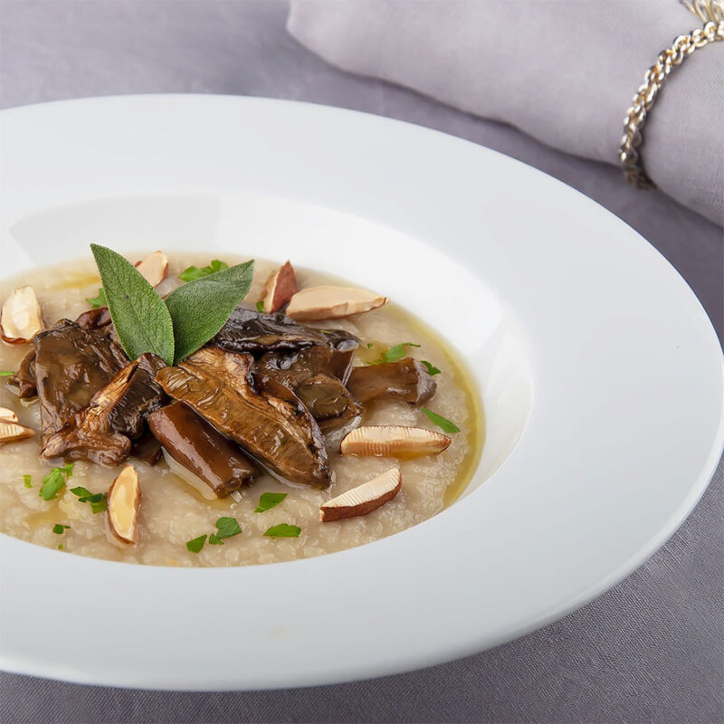 izvirska voda, italijanski riž* (17 %), sončnično olje*, žafranikino olje*, italijanska mandeljnova pasta (1 %), morska sol.