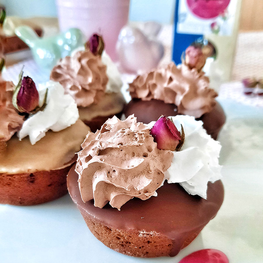 Prav posebni kolački imajo mehko teksturo in so zelo okusni. Obliti s čokolado, okrašeni s smetano in vrtničnimi popki so primerni za posebne priložnosti.