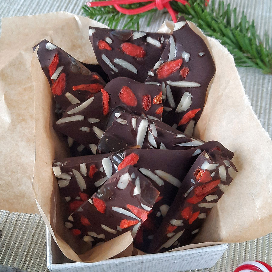 Čokoladno lomljenko enostavno pripravimo iz čokolade, suhega sadja in poljubnih oreščkov.